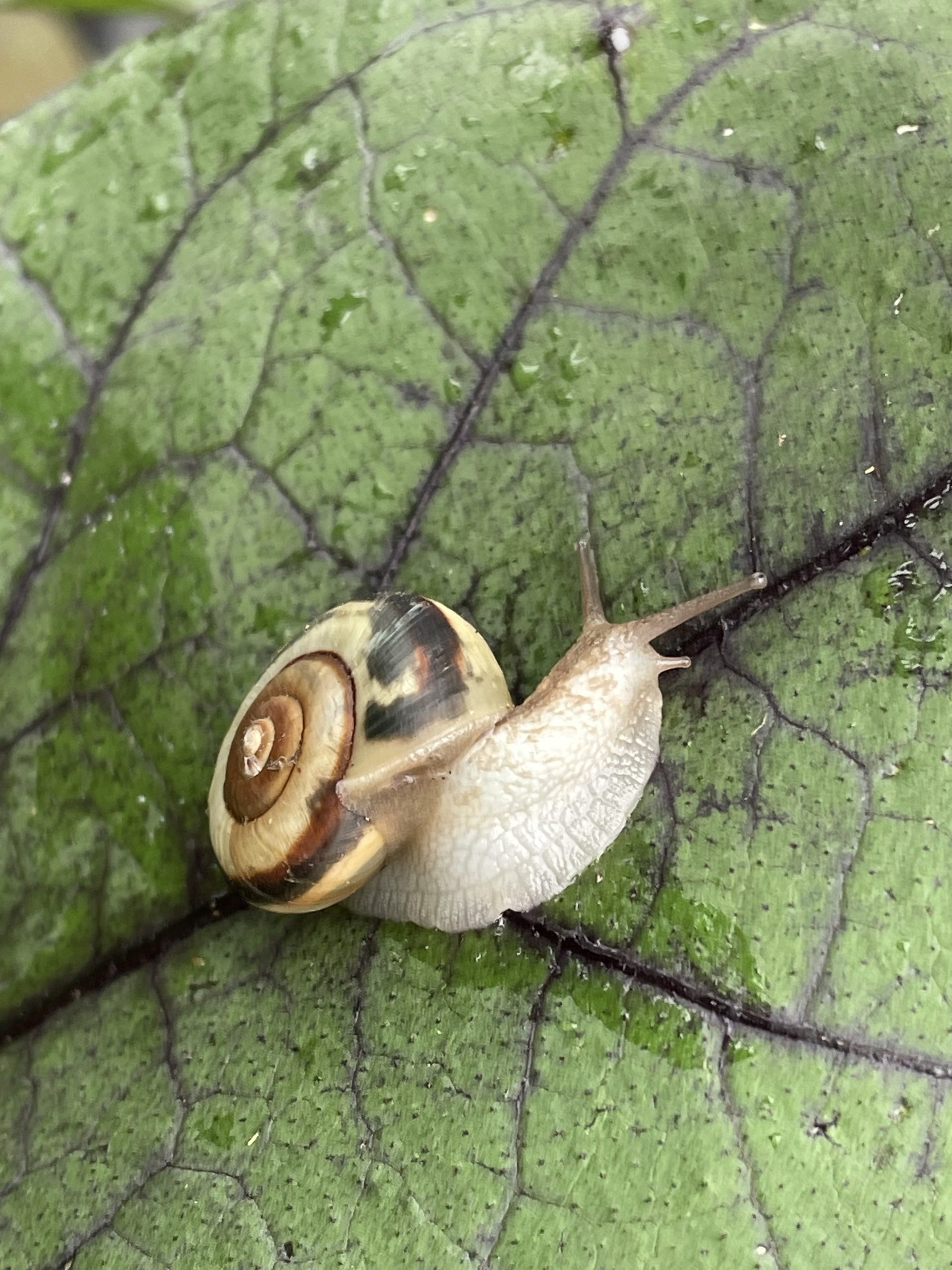 > カタツムリさんがいました。いよいよ梅雨入り間近かですね。