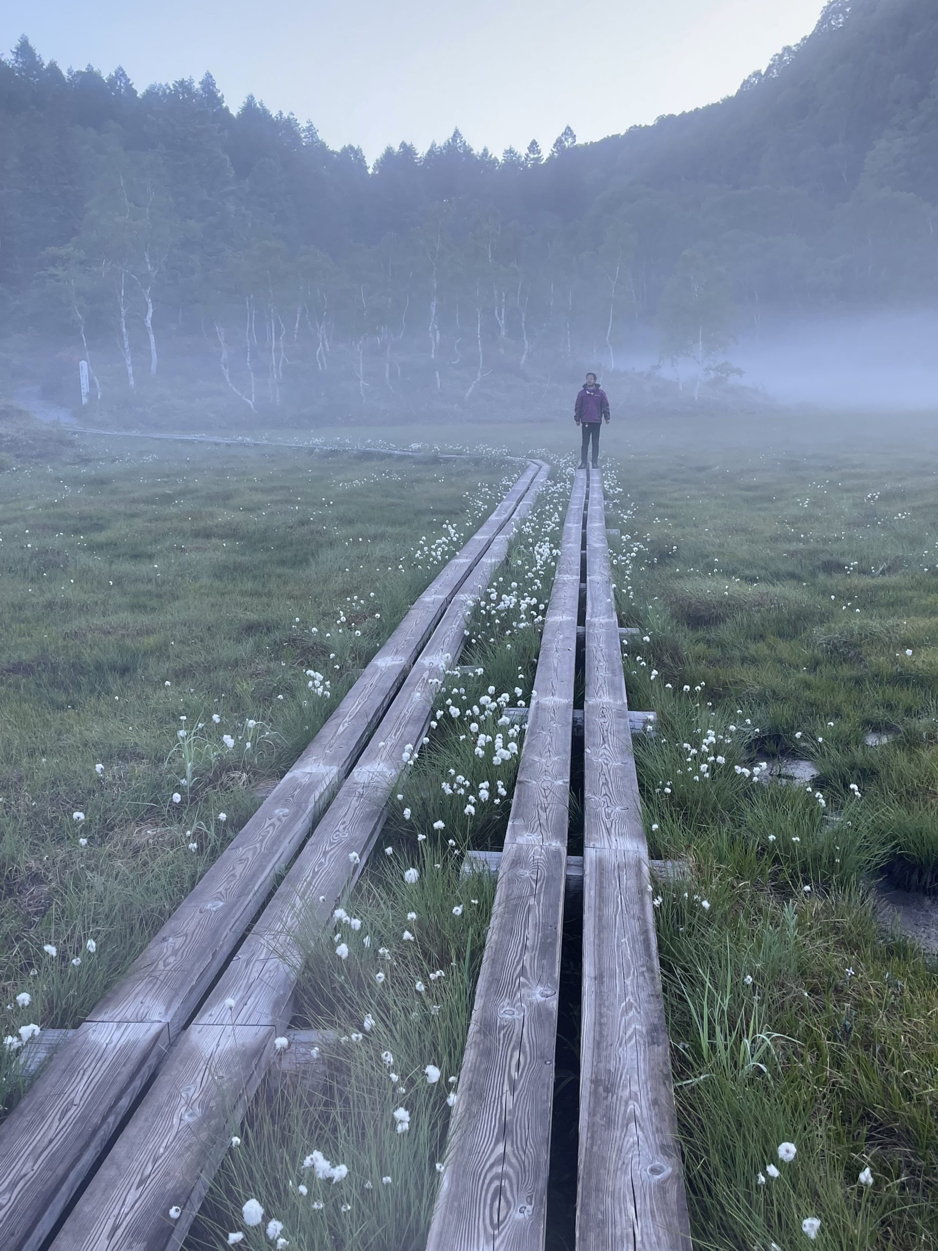 > 渋峠ドライブの後、田の原湿原ウォーキングに行ってきました。 >朝靄とワタスゲとがいい感じですね。