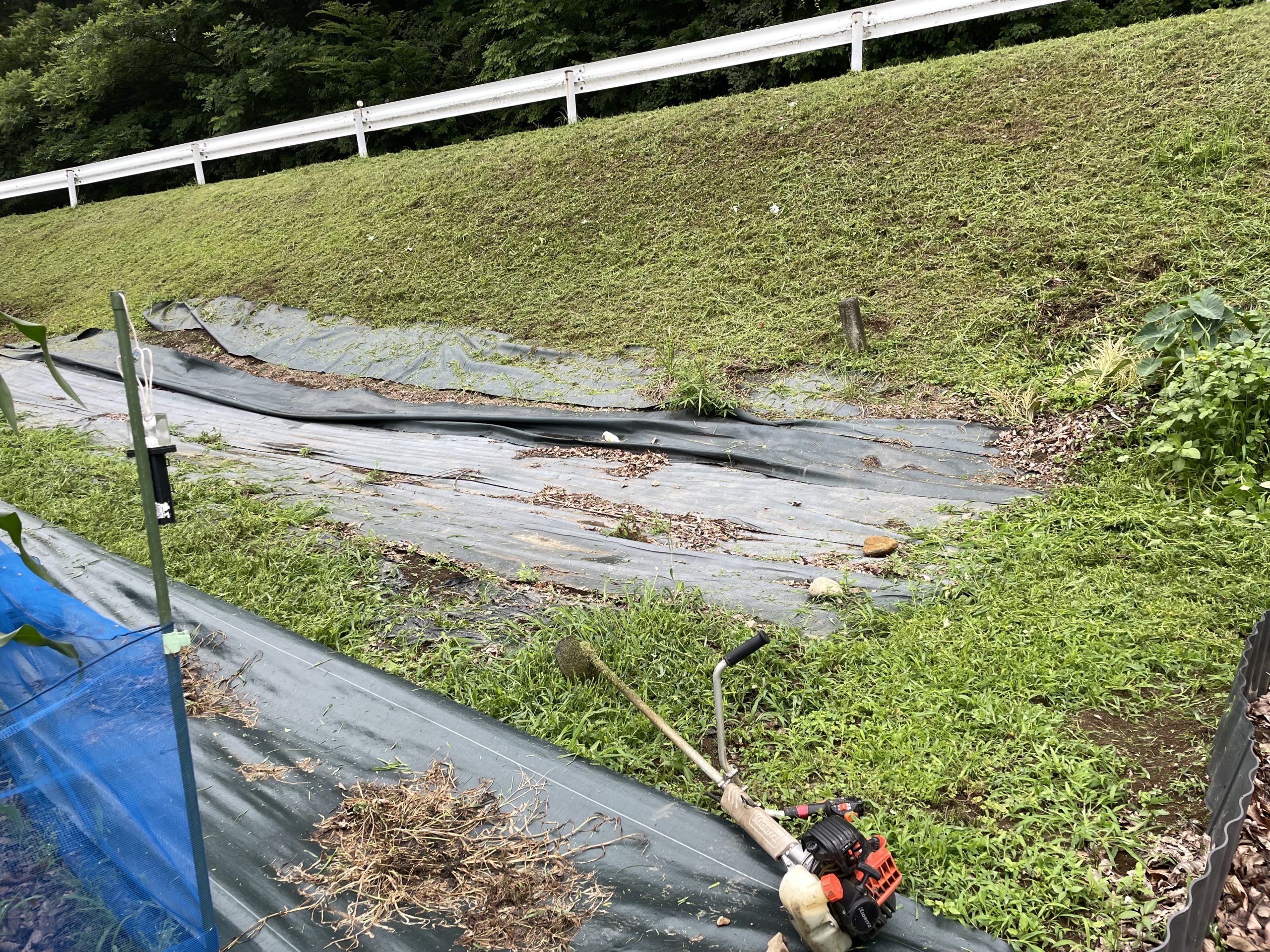 > 今日は、曇り空なので草刈り日和ですね。刈り払い機で急斜面などを刈りました。