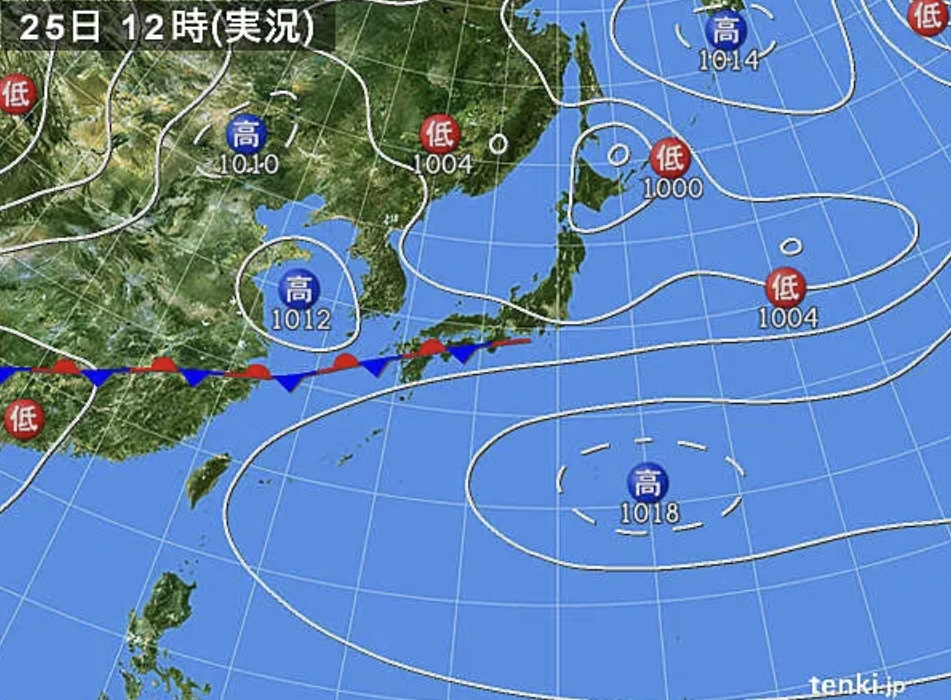 梅雨前線が大陸から西日本に延びています。…その通りです。