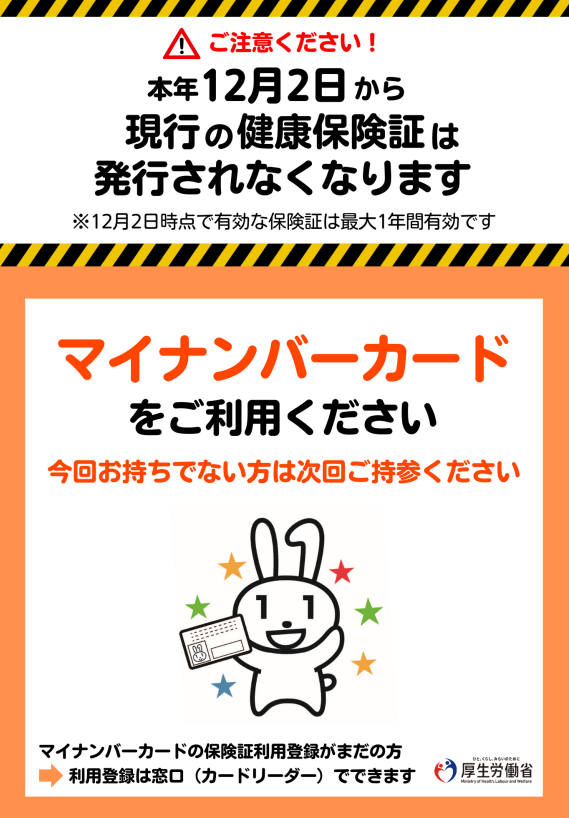 > 本年12月2日から、つまり2024年12月2日から現行の保険証は発行されなくなるということが分かりました。