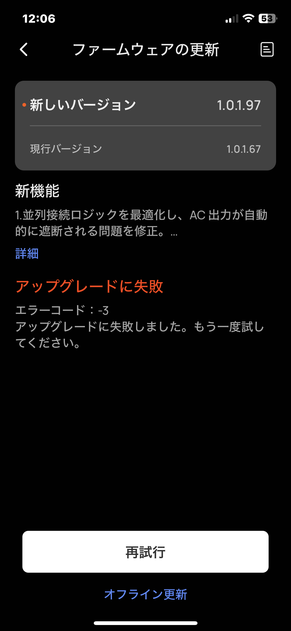 スマホアプリで、蓄電池デルタproの放電を残り何パーセントで終了にするかの設定をしようとしたら、ファームウェアの更新を求められました。