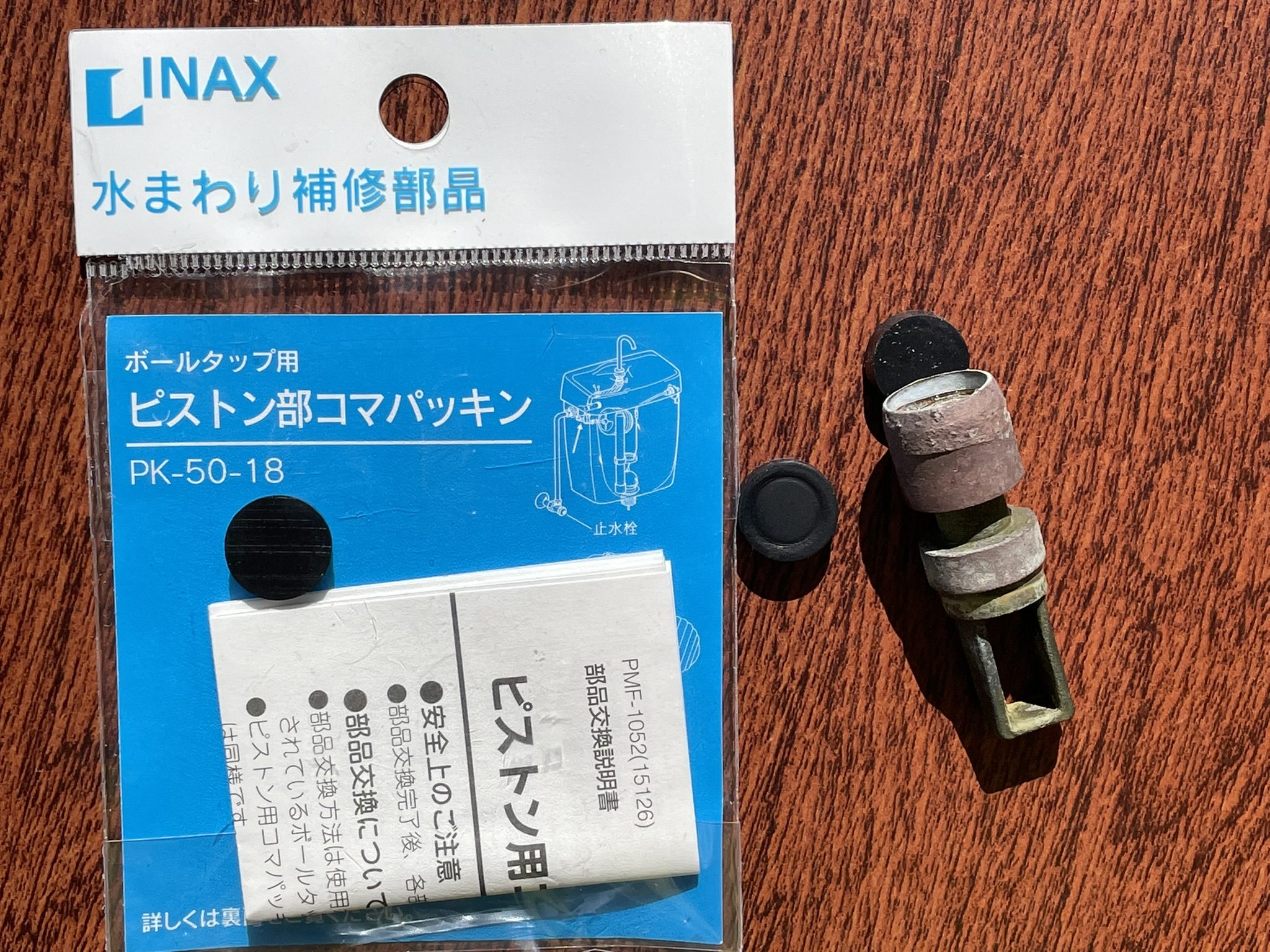 今日のできごとLIXILで調べると、ボールタップ用ピストン部コマパッキンPK-50-18という純正パーツが代替品であることを発見しました。さっそく、品数の多いホームセンターパワーコメリに行って買ってきました。458円でした。