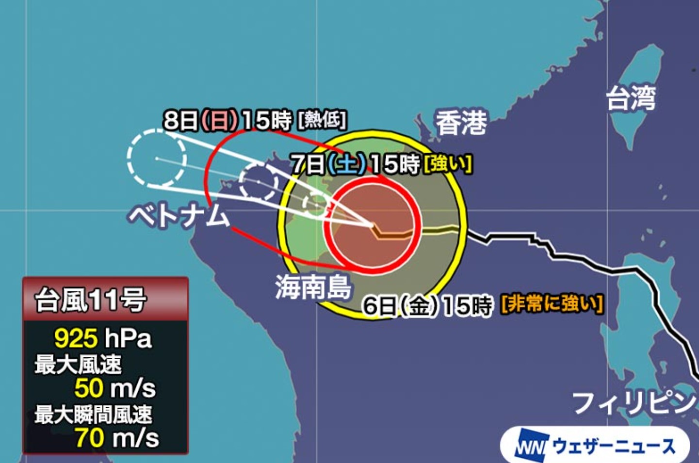 めざせ気象予報士2024台風10号は、日本を騒がせましたが、その後の台風11号ヤギは、中国海南島・香港・ベトナムなどに大きな被害をもたらしたようです。風速がすごいですね。