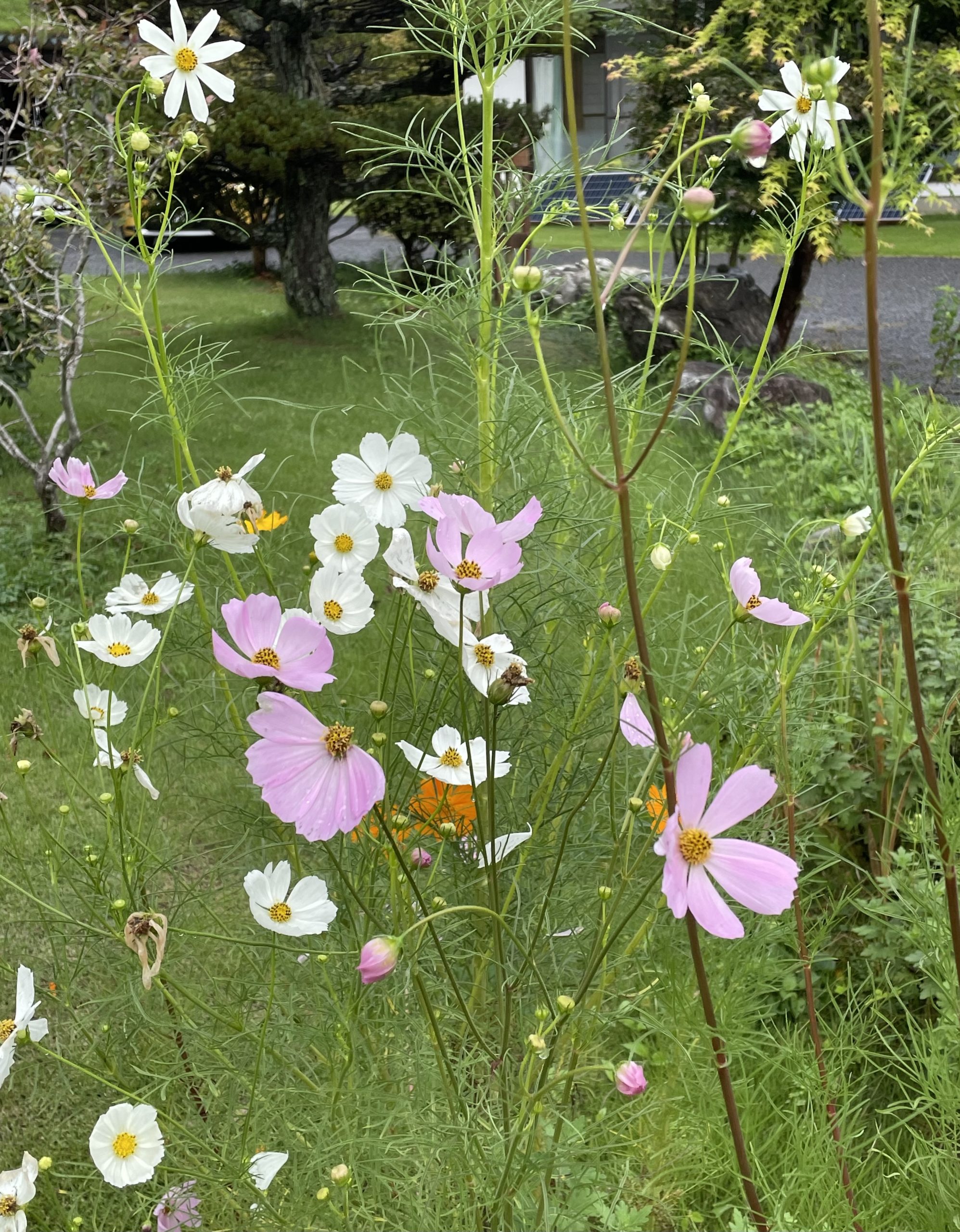 ロータリーの芝刈り部分を拡張したので、コスモスが減ってしまったのですが、それだけに貴重な感じがします。