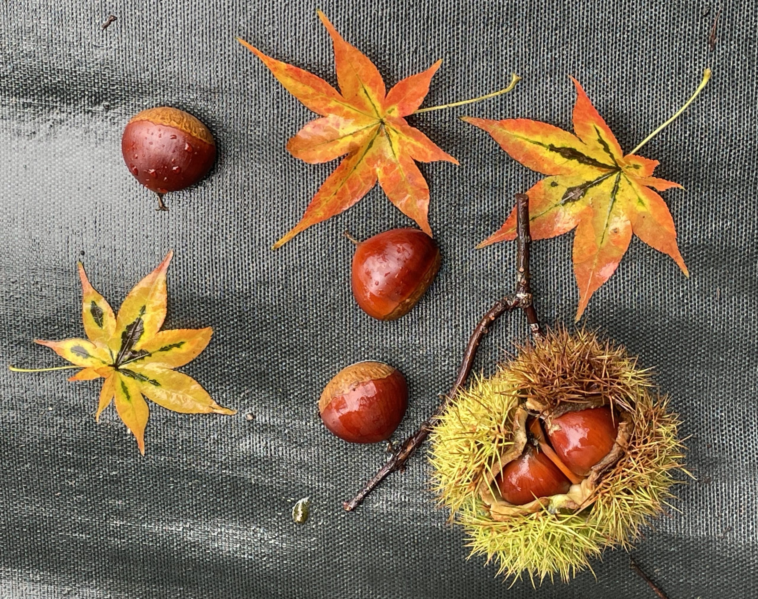 さて、早朝から栗拾いに行った神様から、画像が送られてきました。いやいや、これは芸術ですね。芸術の秋です。こいういセンスって、私には真似できません。