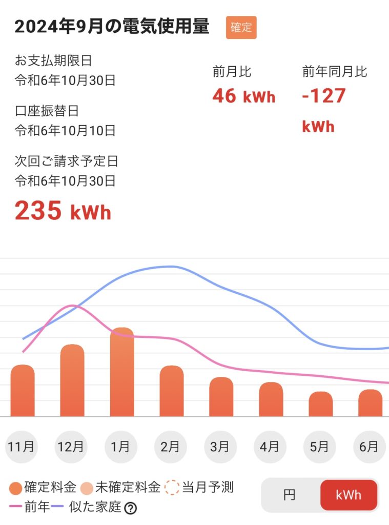 9月の電気料金の確定が出ました。今月は、天気が良い日が多くて、お日様エコキュートがよく機能したようです。