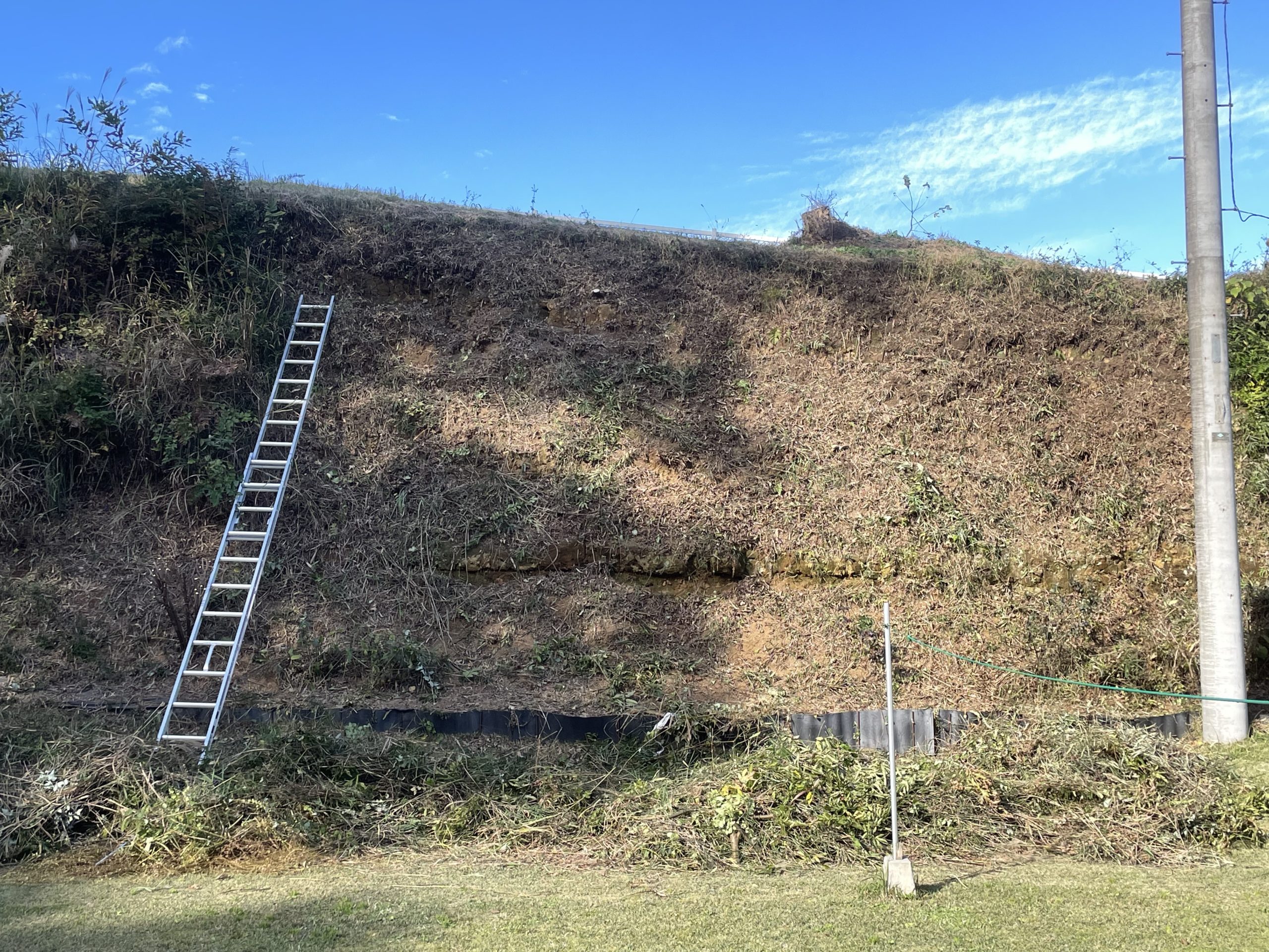 > 今日もとってもいい天気だったので、午前中から急斜面刈りをしました。気温はそれほど高くないのですが、日射が汗をかかせます。
