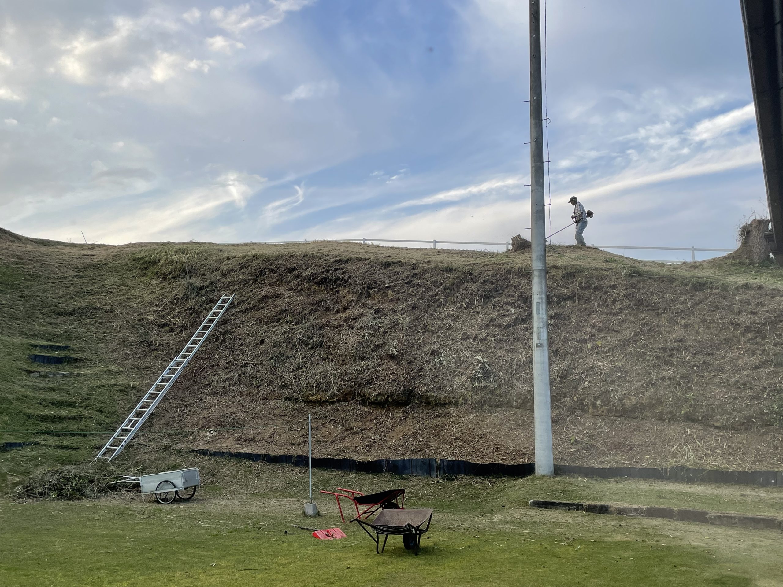 しかし、一通り終わったので達成感がありますね。次は、敷けるところから順に防草シートを敷きたいと思います。固い赤土に金属製のUピンが刺さるかどうかが問題です。