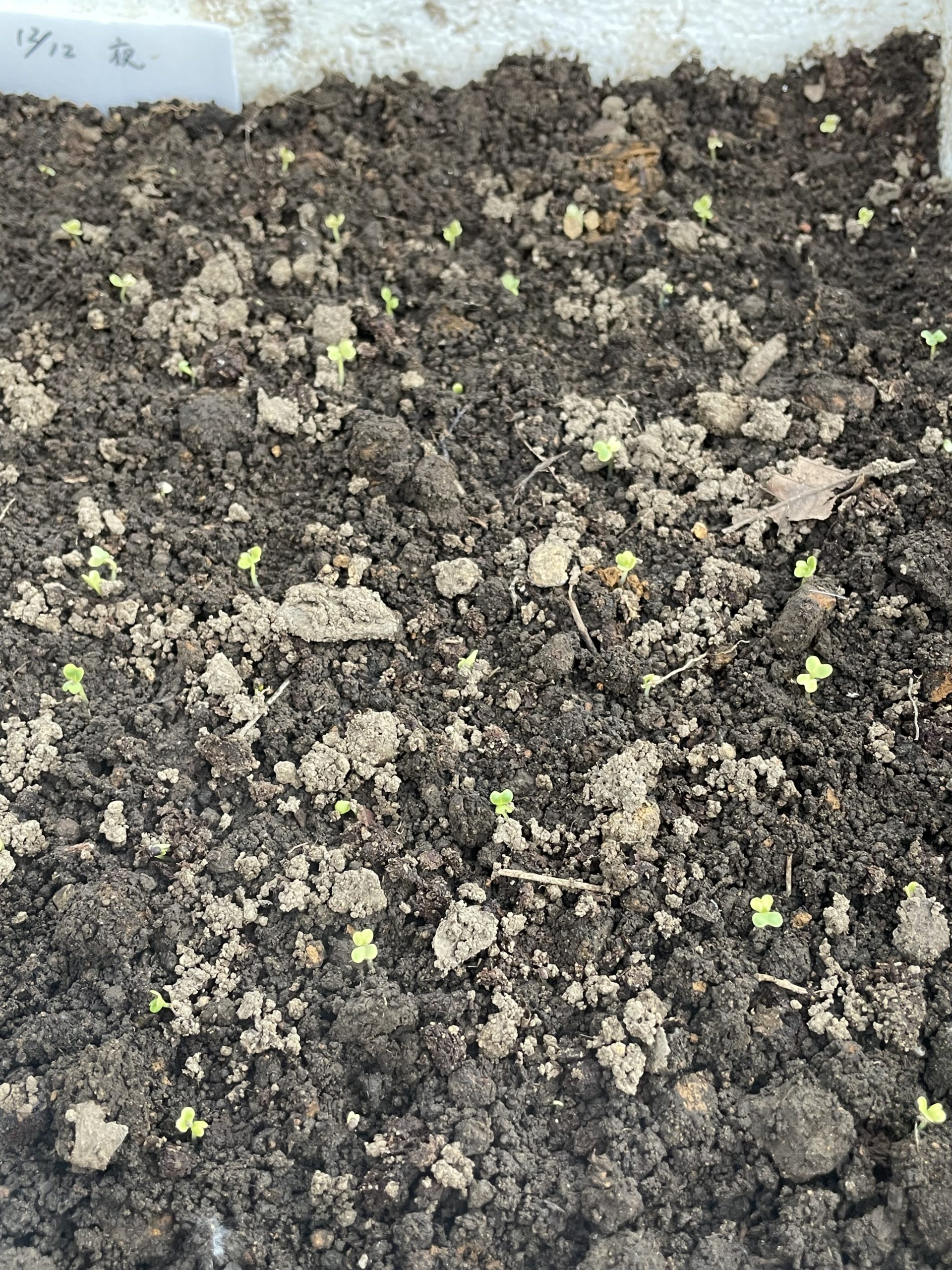 小松菜の芽が出たよ 家庭菜園 2024.12.18 小松菜の芽がこの時期に出て、神様が感動しています。この後、どうなるのかわかりませんが…。ほうれん草は元気です。 寒い寒い今年の1月下旬に、寒い中4坪ビニルハウスを作ったのが懐かしいです。