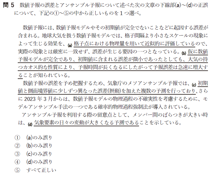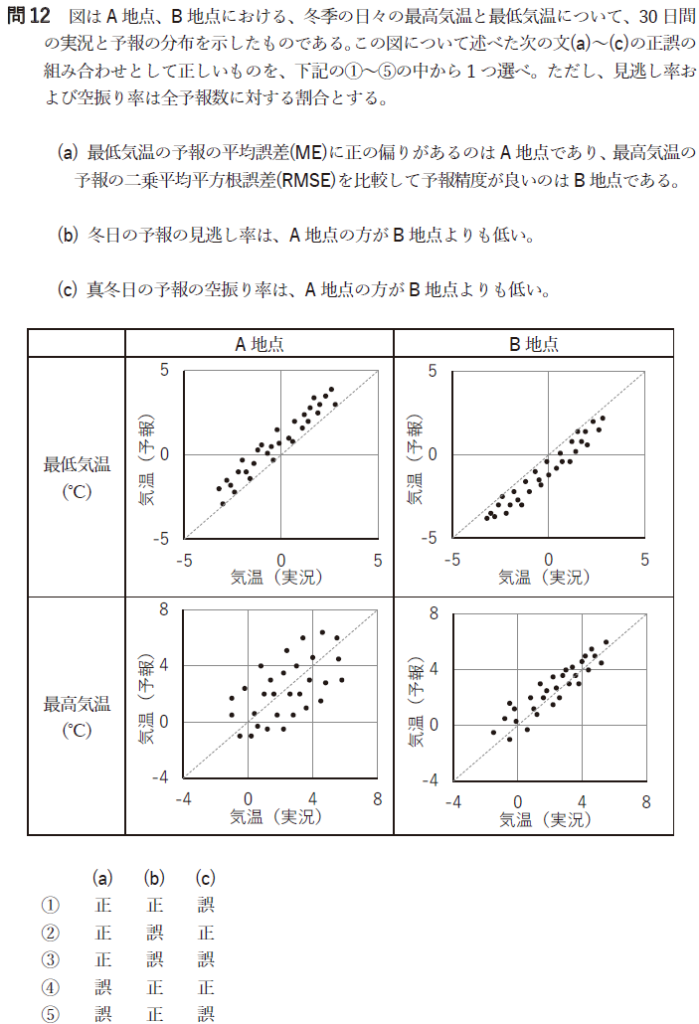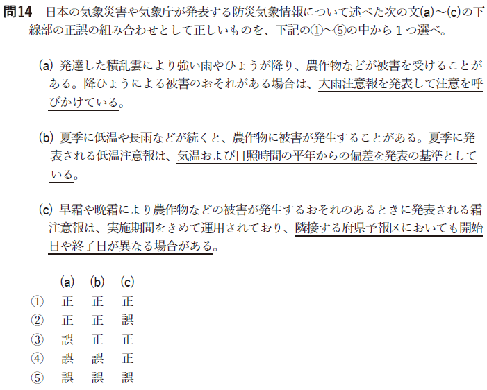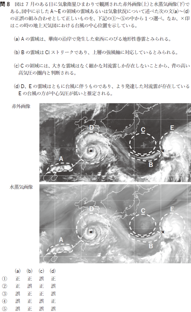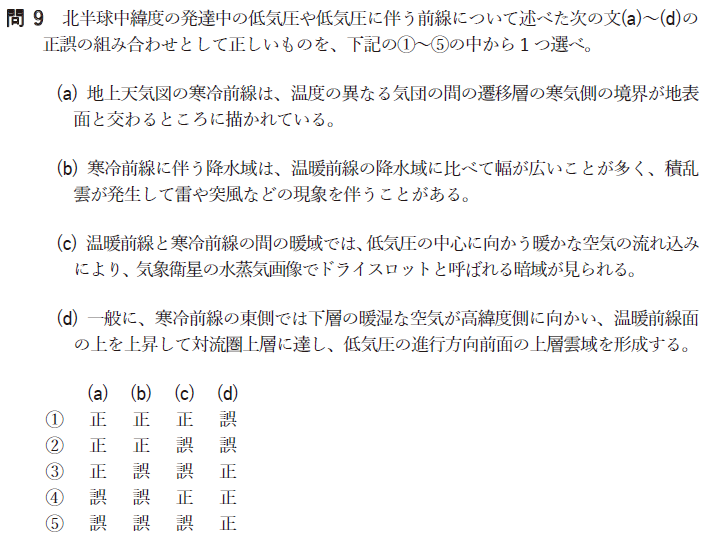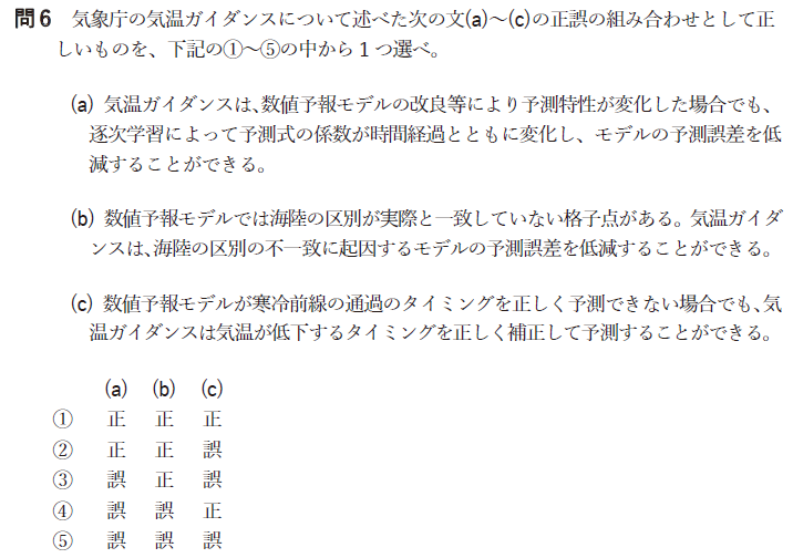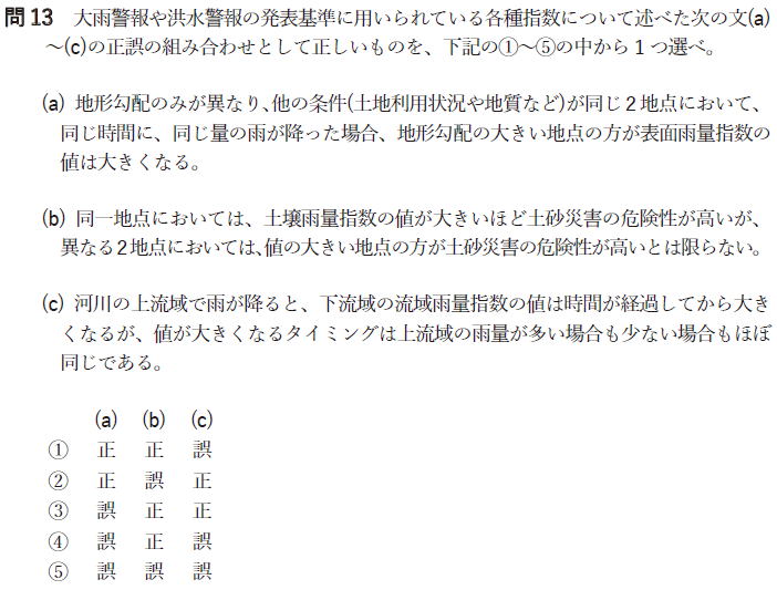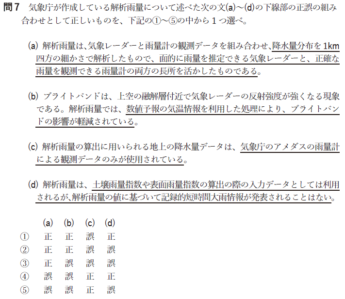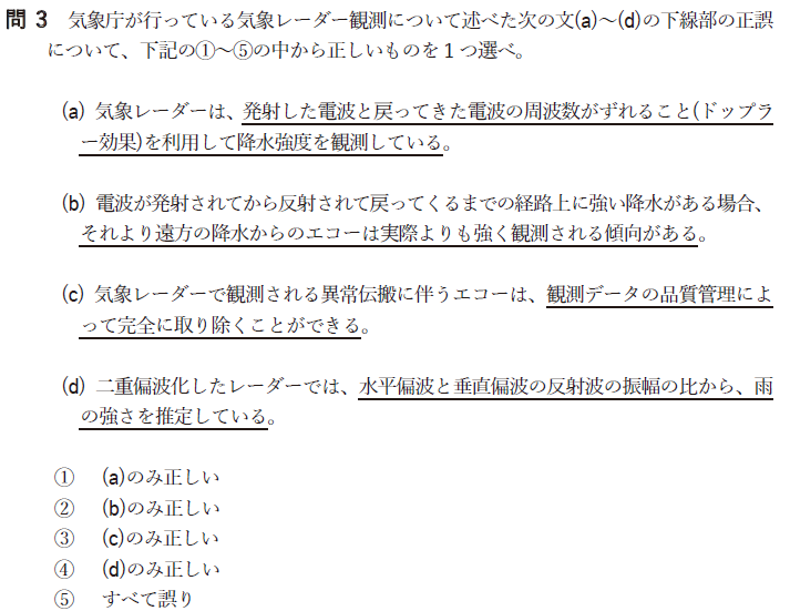 b 誤 送信された電波は、強い降水域を通過するときに減衰するので強まるではなく弱まる