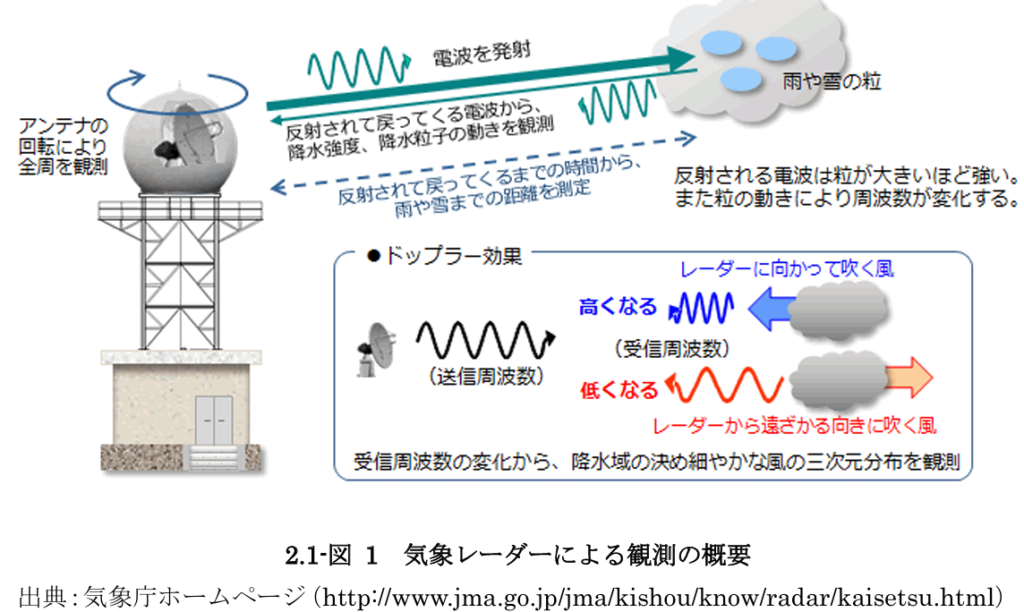 二重偏波気象ドップラーレーダーは、気象観測において非常に重要な装置です。このレーダーは、水平偏波と垂直偏波の2種類の電波を同時に送受信することで、降水の強さや種類(雨、雪、雹など)を高精度に測定できます。強い雨に対して反射波の水平偏波と垂直偏波の位相のずれを用いて、弱い雨に対しては反射波の振幅を用いて雨の強さを推定している。