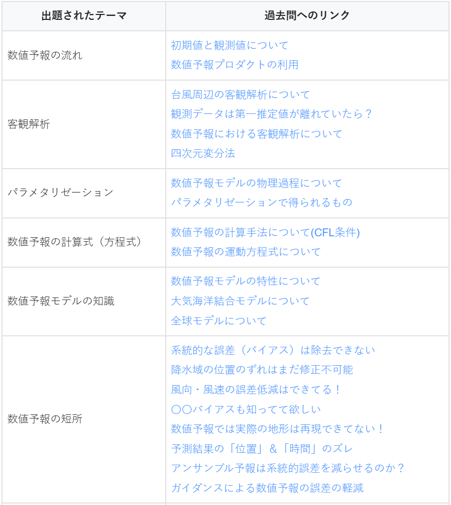 下のリンクに、過去に出題された「予報」に関する内容一覧があります。