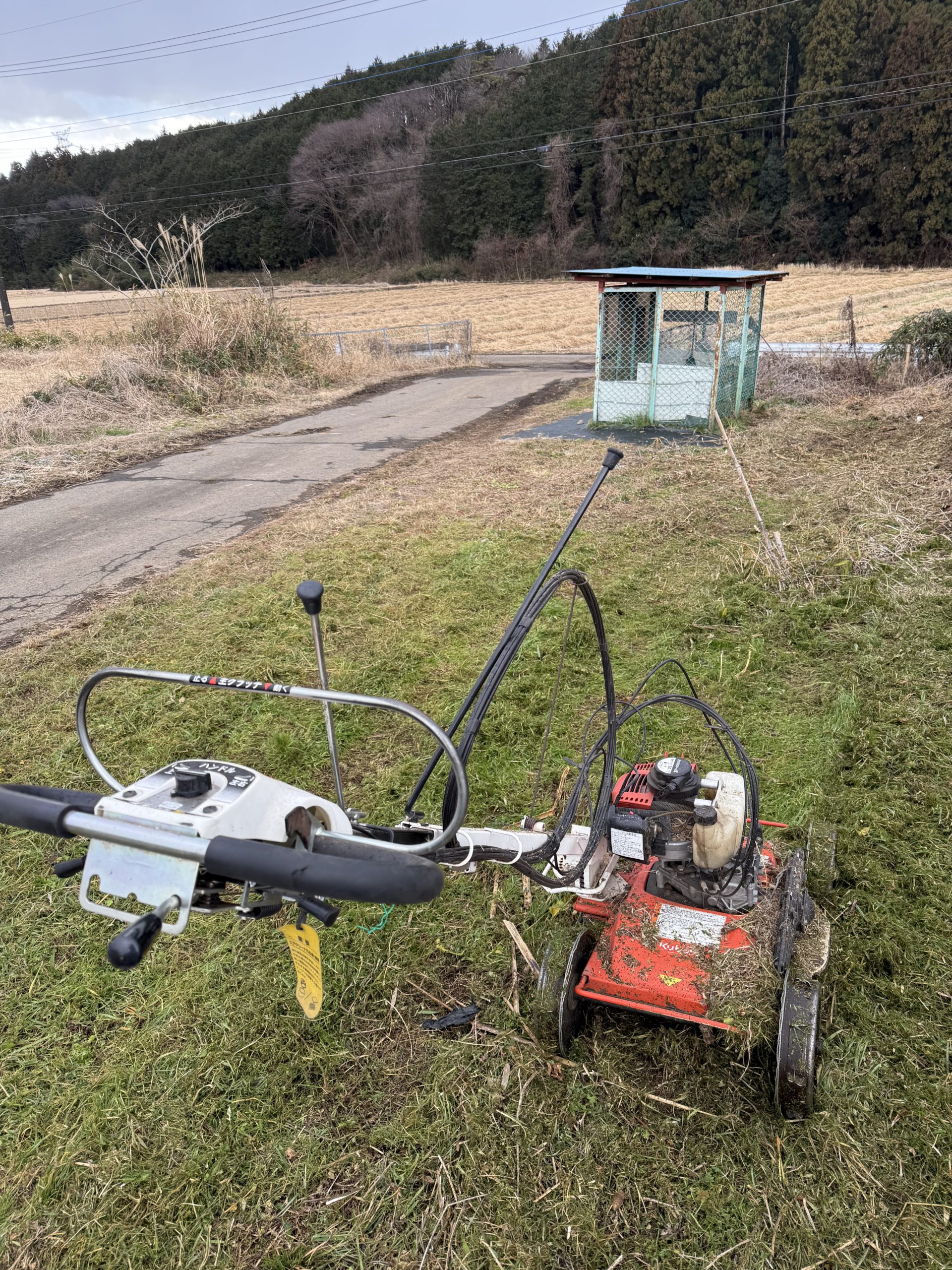 > 今日は、カルマックスでごみステーションまで草刈りに行ってきました。道中、川沿いの道路とガードレールの境目の草も刈っていきました。