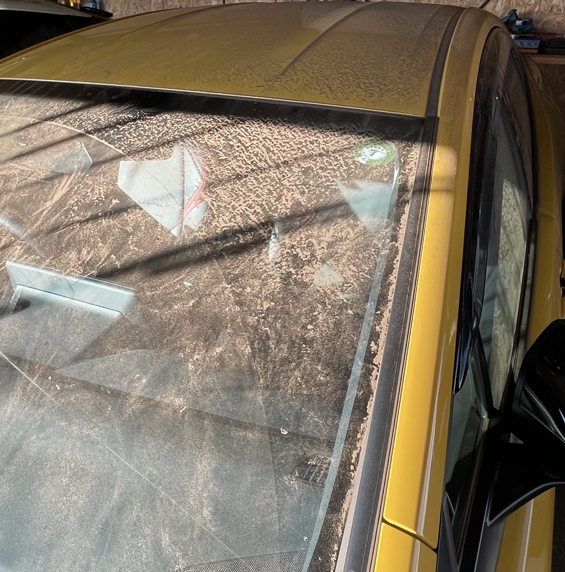 > 昨日の強風で、車庫のプリウスに土埃が溜まりました。