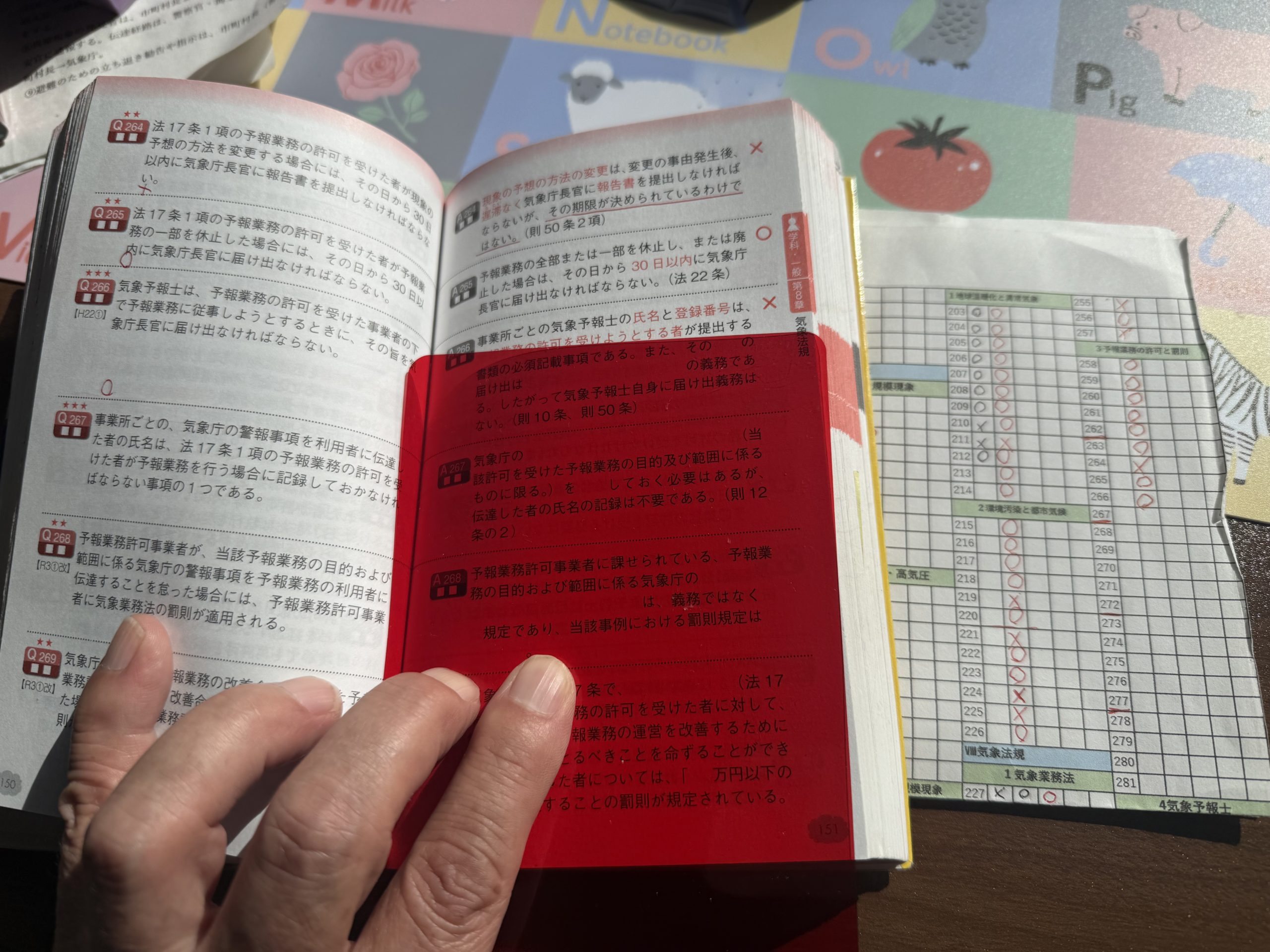 今日は、一般で15問中4題出題される気象法規のドリル正誤問題81問を集中してチェックしました。