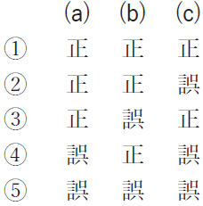 問12 日本に影響を及ぼす台風によって発生する災害について述べた次の文(a)~(c)の正誤の組み合わせとして正しいものを、下記の1~5の中から1つ選べ。