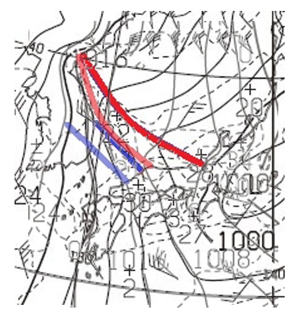 この作業をPCでできないものかと思っていましたが、今日、前線解析の手順を学んでいたらこんな図に遭遇しました。