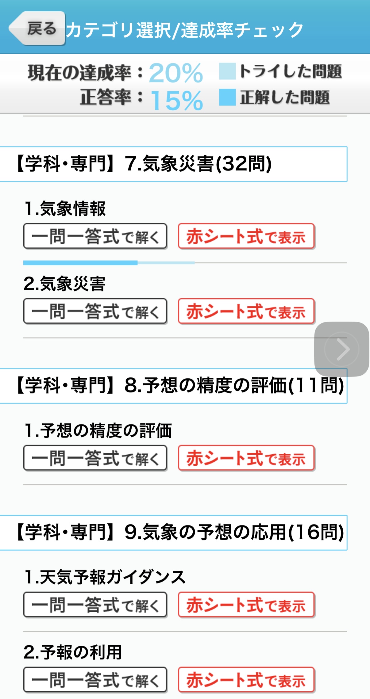> 今日はアプリ3日目。630問のうちの20%に答えて、正答率15%の表示