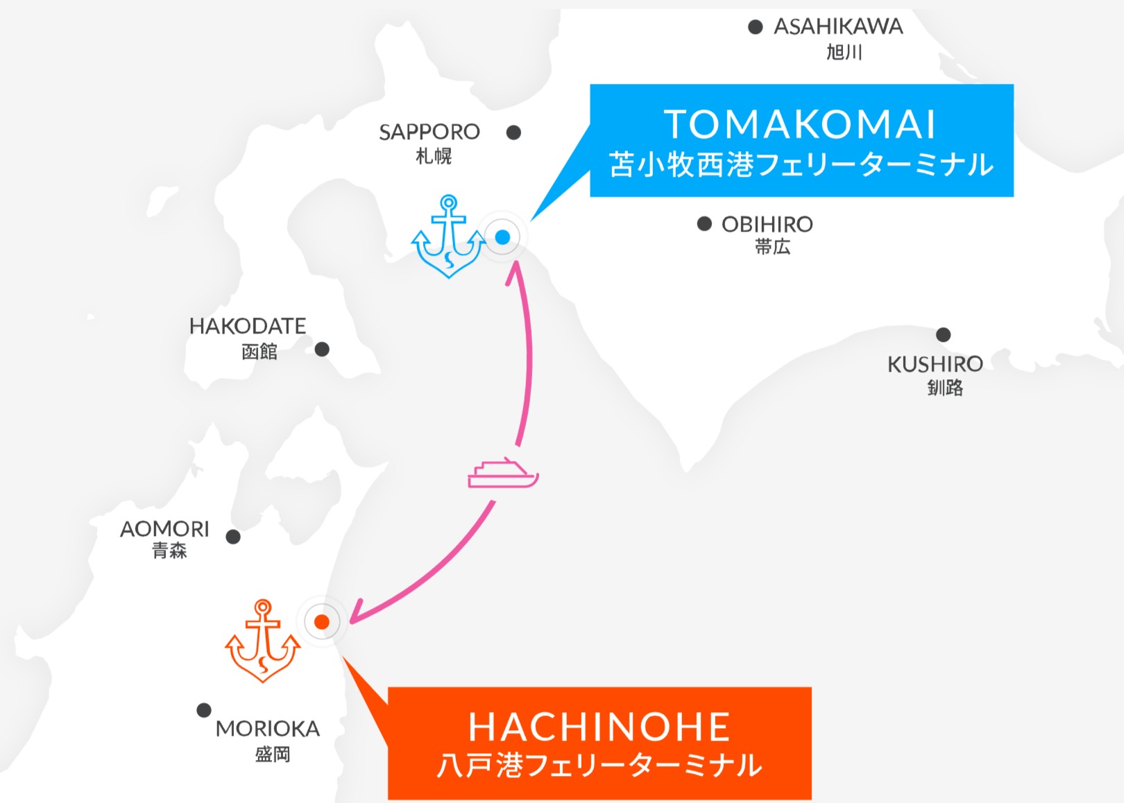 > フェリーは、八戸-苫小牧間を8時間で結んでいるシルバーフェリーを思いました。