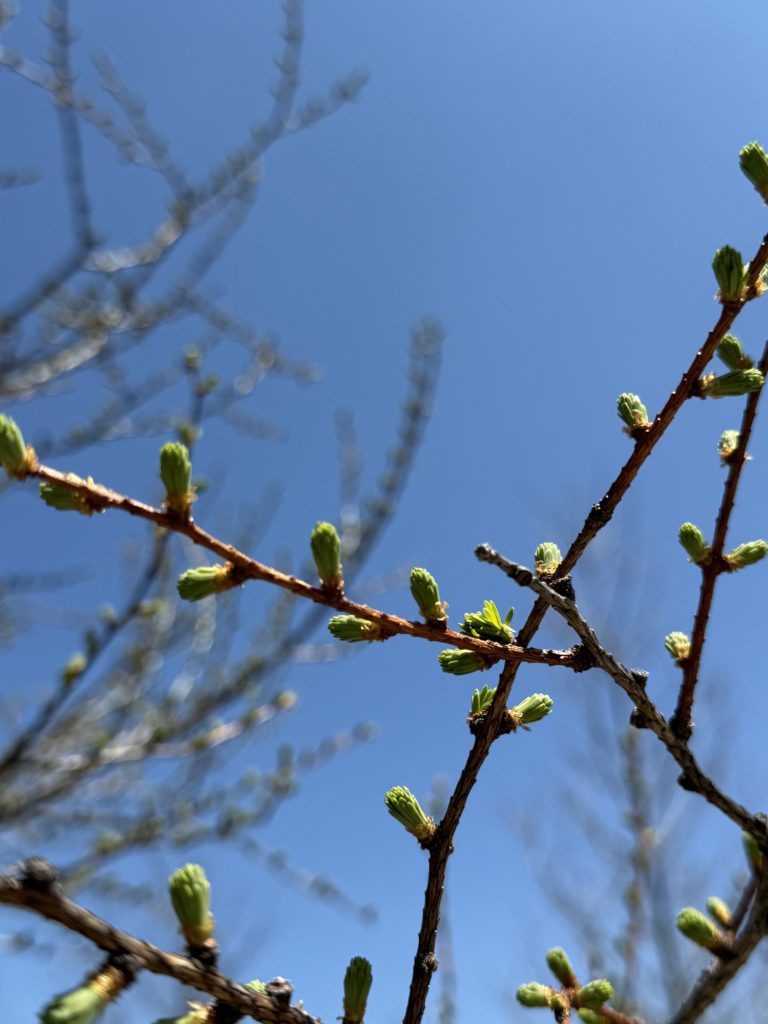 木々の芽は、平地とは違い、少しだけ吹き出した感じです。おそらく、この季節にこの辺りをウォーキングするのは初めてではないかと思いますが、さわやかな空気を感じることができました。