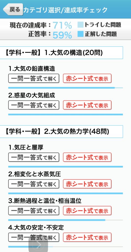めざせ気象予報士気象予報士試験対策の一問一答シリーズアプリの進捗状況についての記録です。