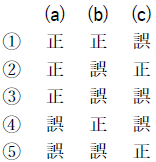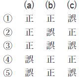 問6 気象庁のメソアンサンブル予報システムから作成したガイダンスについて述べた次の文(a)~(c)の下線部の正誤の組み合わせとして正しいものを、下記の1~5の中から1つ選べ。