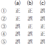 問6 気象庁が作成している天気予報ガイダンスについて述べた次の文(a)~(c)の正誤の組み合わせとして正しいものを,下記の1~5の中から一つ選べ。