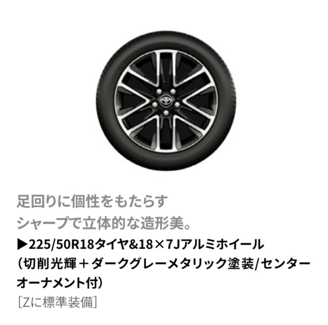 ホイルは、こんな感じです。タイヤの幅は、新型プリウスは195mmでしたが、カローラクロスはSUVなのでさすがに広くなっています。