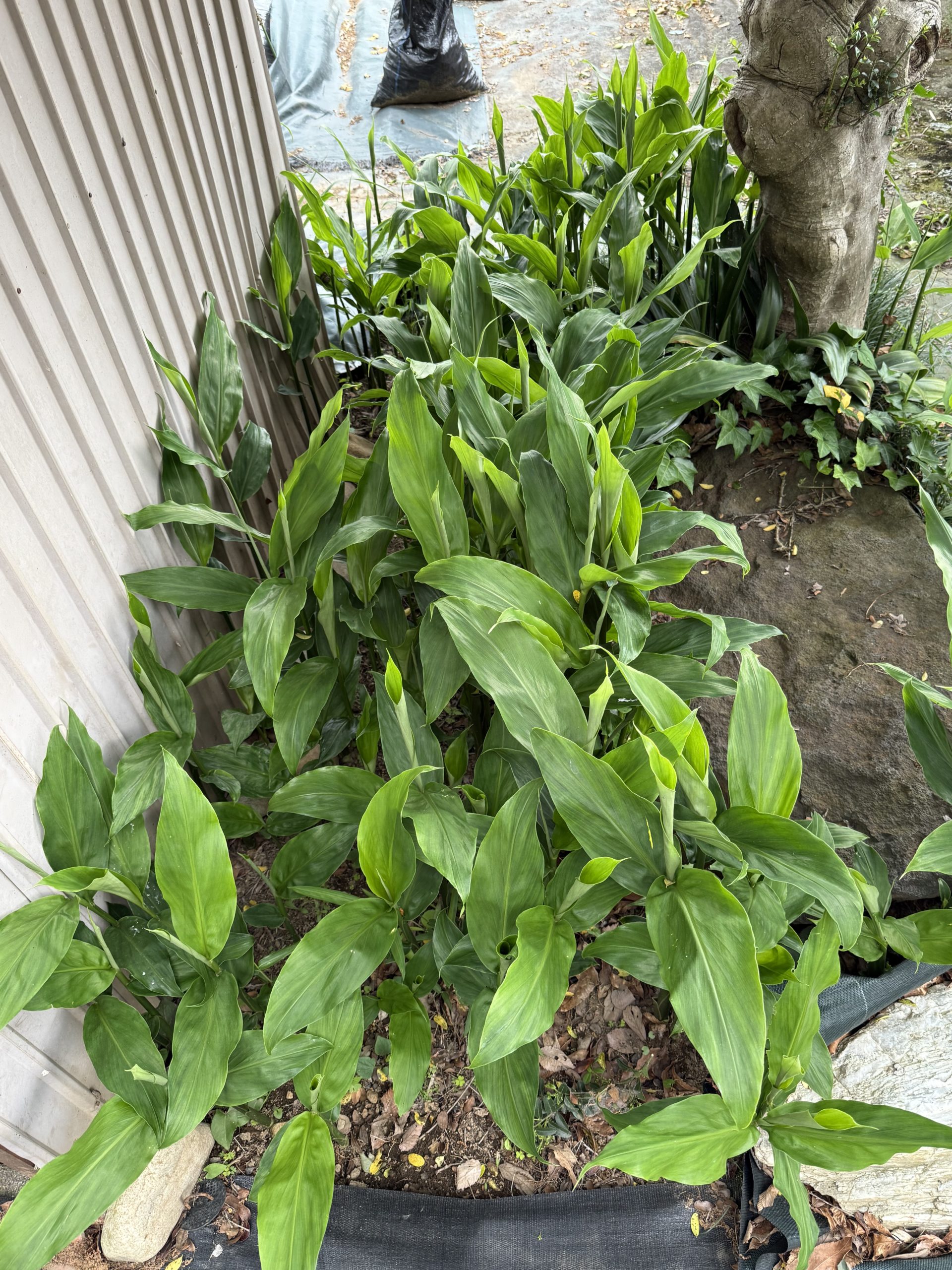 > 地上部分を整理したミョウガですが、地下茎が残っているので、きれいに出揃っています。