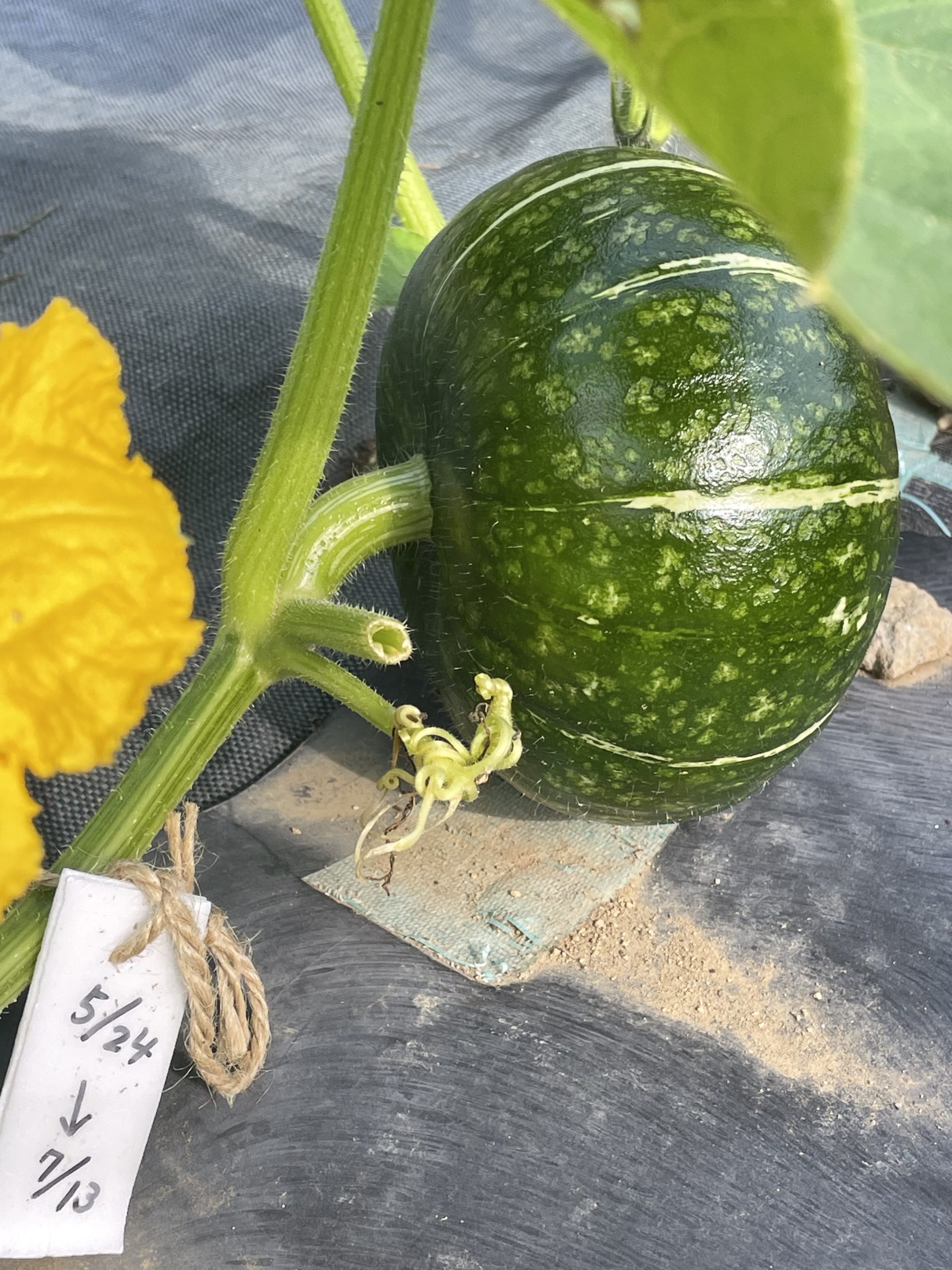 5/24は、雌花が咲いた日。7/13は、収穫予想日。開花から2週間経ったようです。