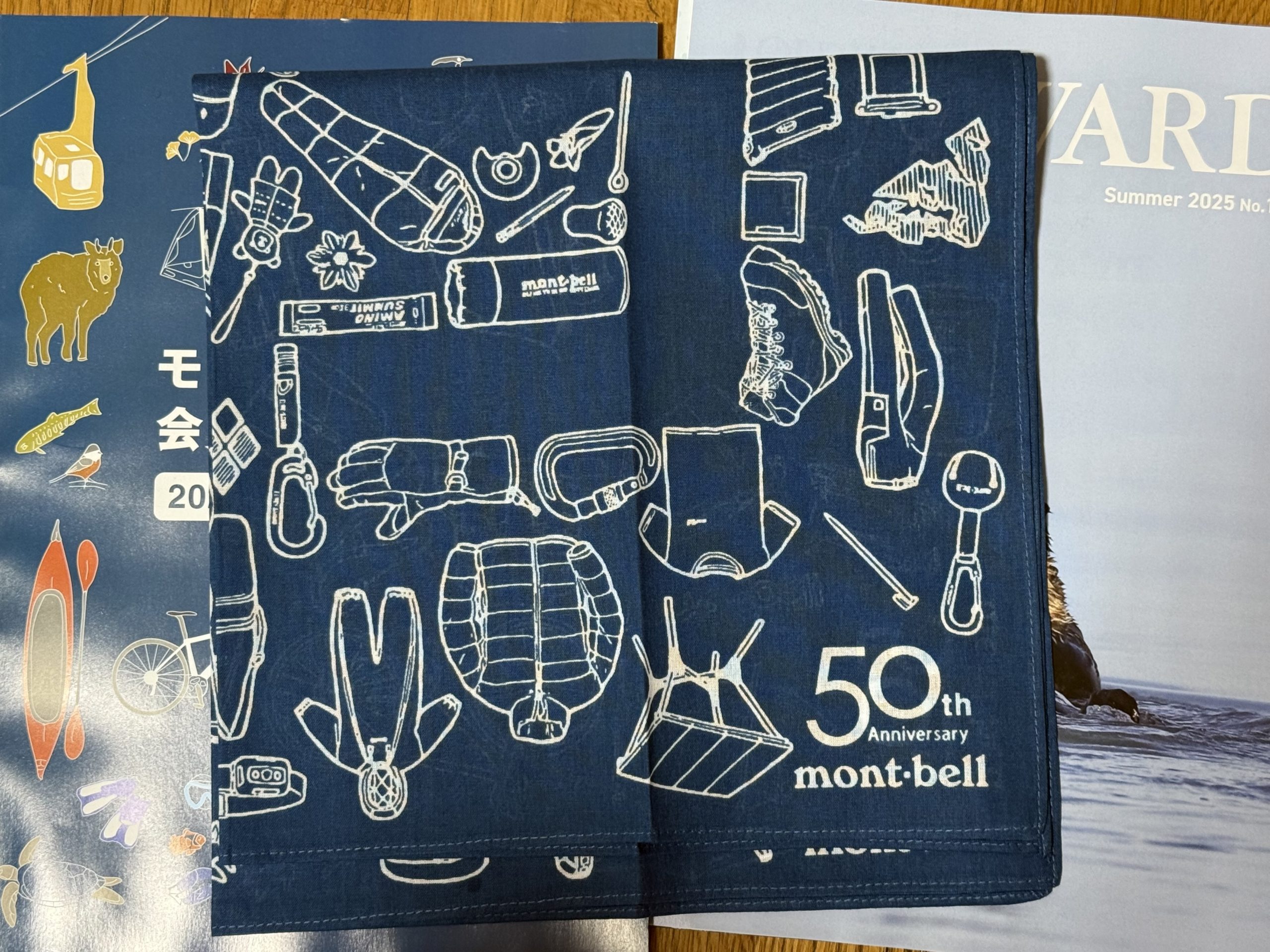 モンベルバンダナ 今日のできごと 2025.06.09 昨日届いたモンベルクラブからの郵便物の中に、モンベルバンダナが入っていました。モンベル50周年を記念してのおまけのようです。 モンベル様には、いろいろとお世話になっています。今後の発展を祈念いたしまして、感謝申し上げます。