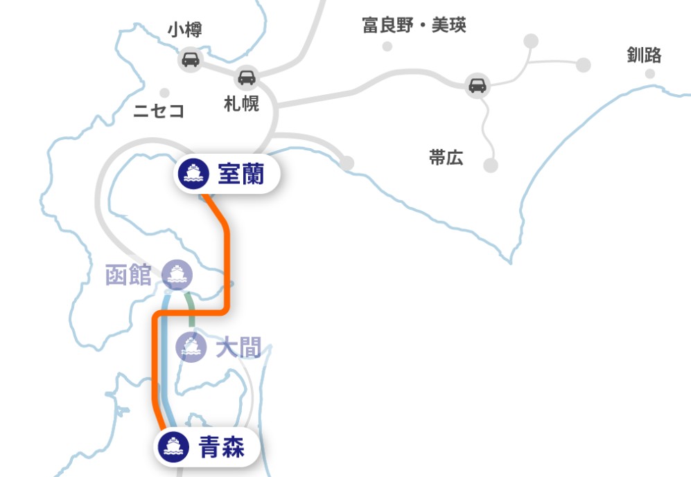 - 道南(洞爺湖・登別・ニセコ)方面から帰るなら → 室蘭発青森行が効率的。