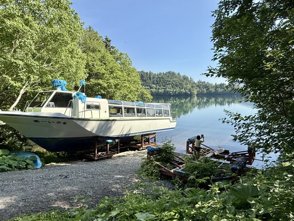 途中、道の駅鹿追6:19と道の駅うりまく7:20を経由し、湖底線路7:49を見学して然別湖に着きました。