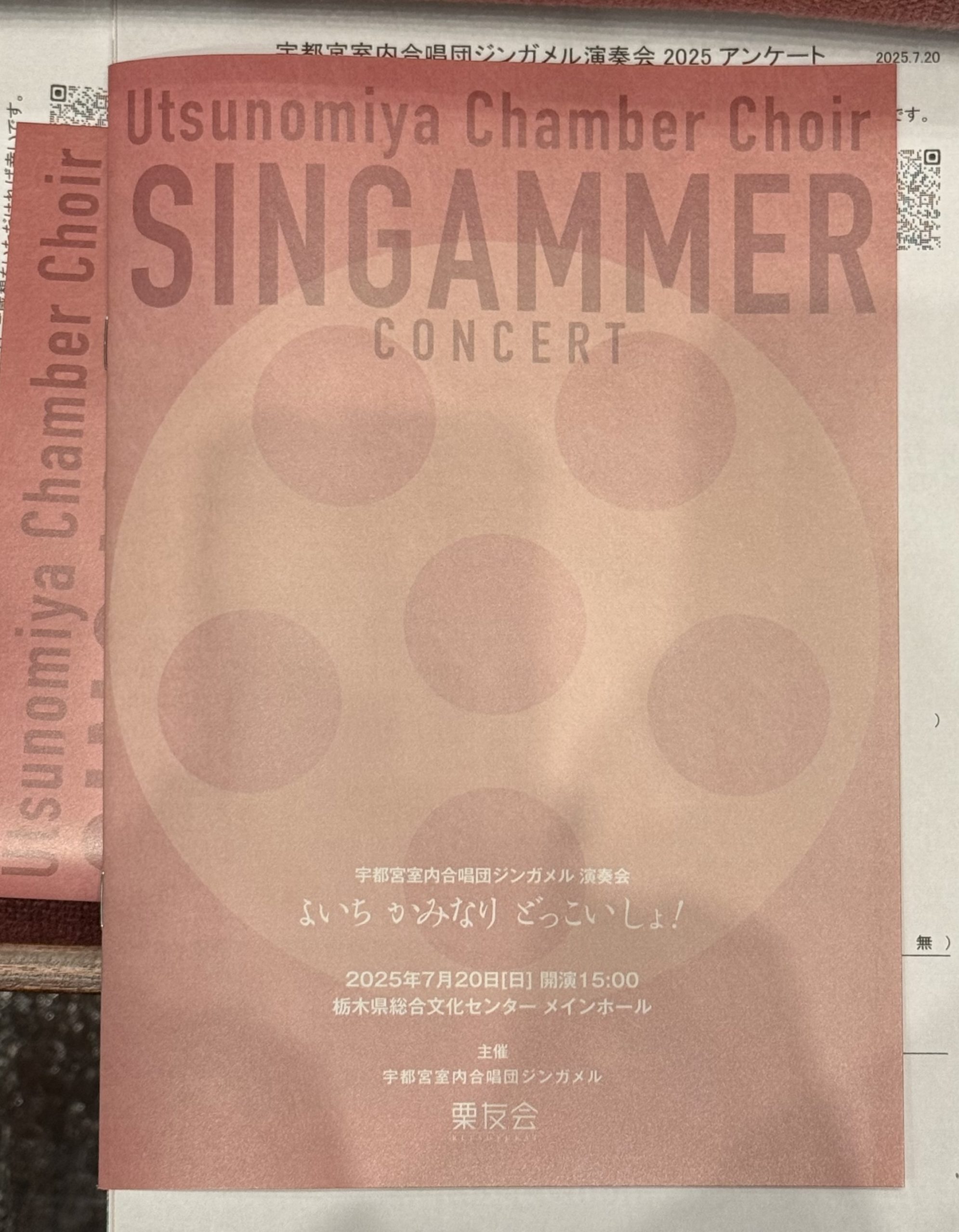 帰宅後、クールダウンしてご招待チケットの合唱団演奏会に行きました。大学の合唱団の同級生と後輩とプロの指揮者と3人が…昔交流があった人たちです。自分は、いろいろなことをやりたい飽きっぽくて中途半端な人間なので、よく分かりませんが、一つのことを継続して楽しめる暮らし方も素晴らしいのだろうと思います。