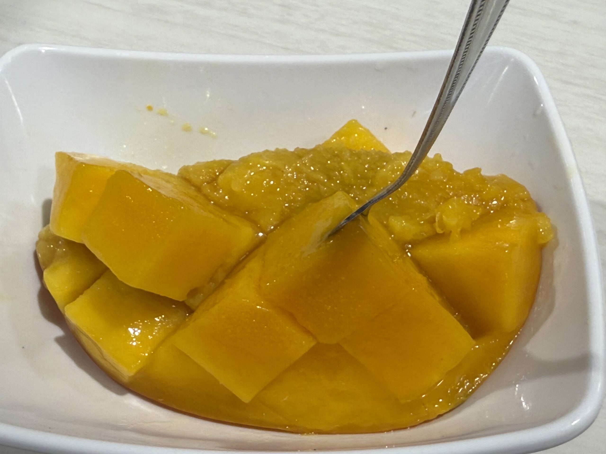 > 魚べいでデザートにマンゴーをいただきました。