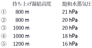 求めるもの 断熱的に持ち上げた時の空気の相対湿度に最も近いもの