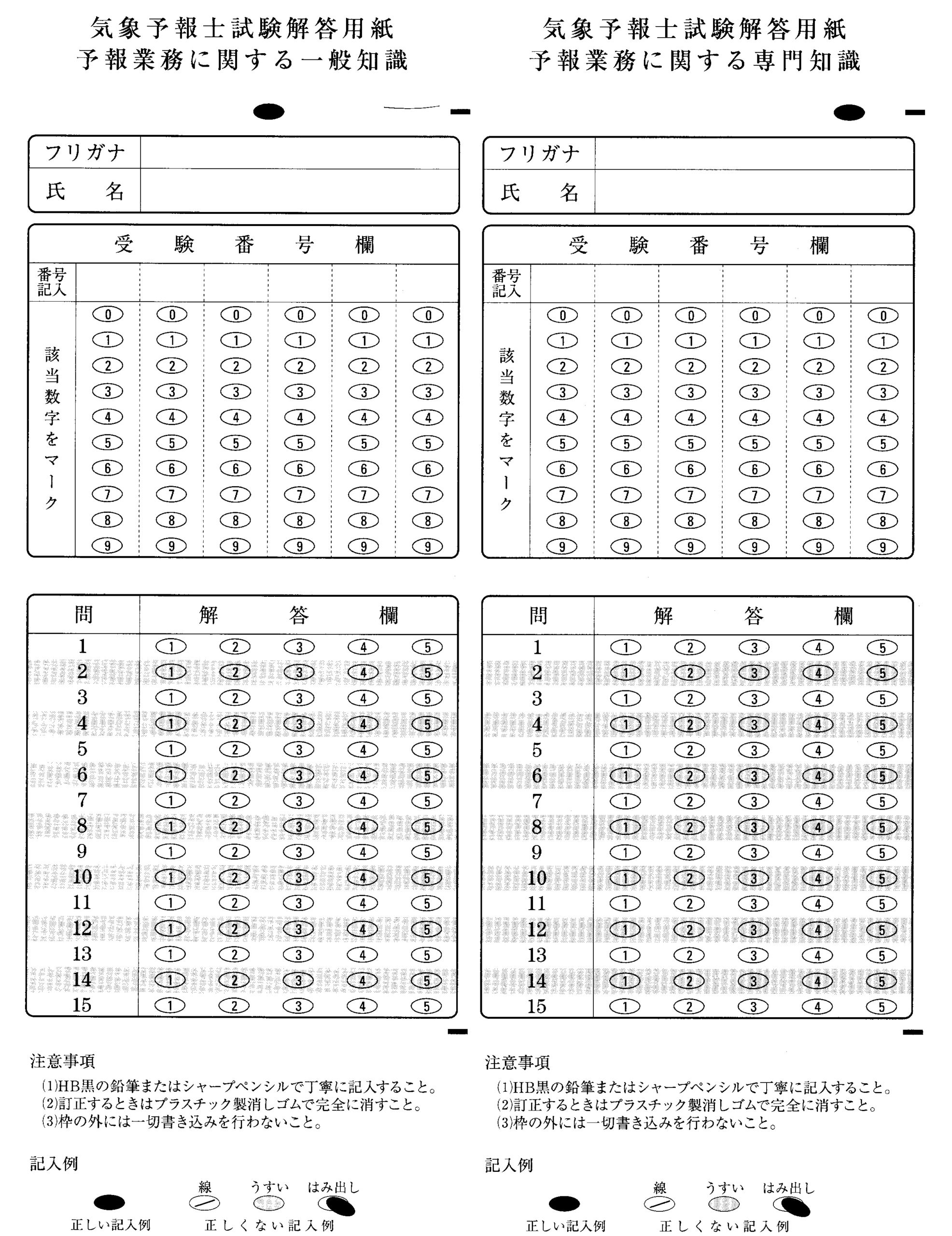 めざせ気象予報士今日は、手元にあった学科試験解答用紙のマークシートをスキャンし、印刷してみました。そして、受験番号の部分にマークしてみました。