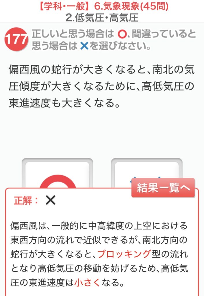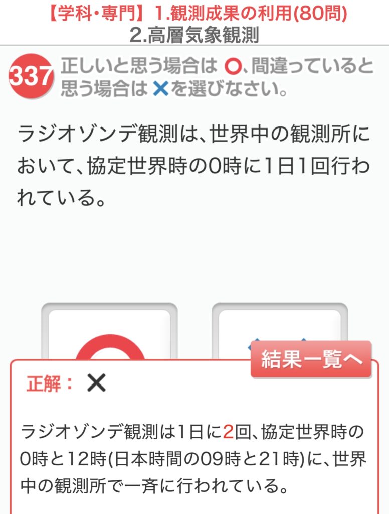 気象予報士試験対策一問一答ドリルアプリに、載っている630問の中からほぼランダムに20問を取り出して出題する「小テスト」というのがあります。