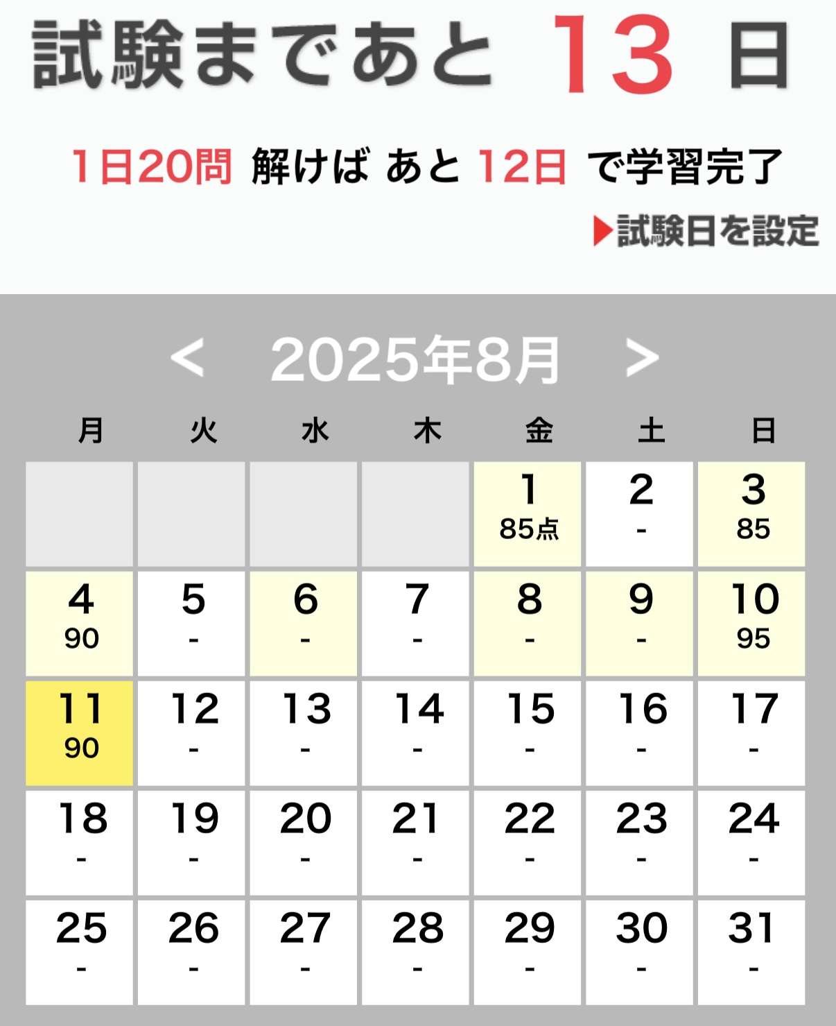 > 1日20問 解けば あと12日で学習完了