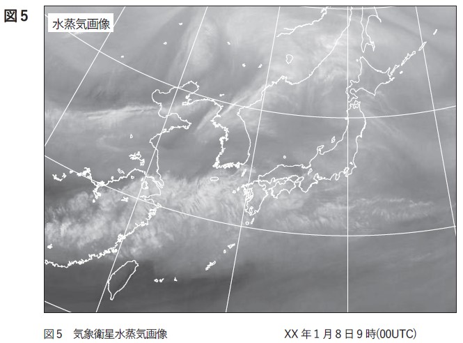 XX年1月8日から9日にかけての日本付近における気象の解析と予想に関する以下の問いに答えよ。予想図の初期時刻は、図4を除き、いずれも1月8日9時(00UTC)である。