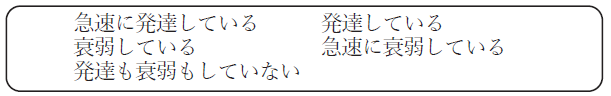 ③名瀬の気圧変化量が地上低気圧の移動および低気圧の発達·衰弱によるものであり,この気圧変化が今後も持続するものとしたとき,地上低気圧の発達·衰弱傾向について,下の枠内からもっとも適切な語句を1つ答えよ。