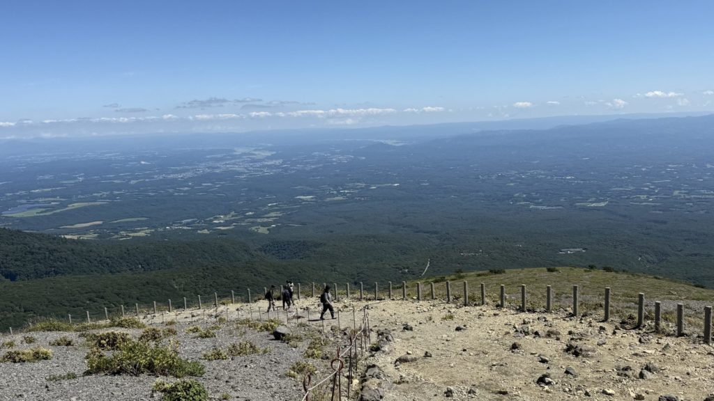 牛が首から北西方向を見た画像です。この真ん中辺の山の向こうは、先日桃を買いに行った会津坂下の方向です。会津と那須といえば、以前三斗小屋温泉からの帰り道に歩いた山道が思い出されます。昔の人は、よくよく歩いて旅をしたのです。桃が食べたいから、ちょっと会津坂下まで買いに行ってきました…なんて、江戸時代の人に話をしても信じてもらえませんね。