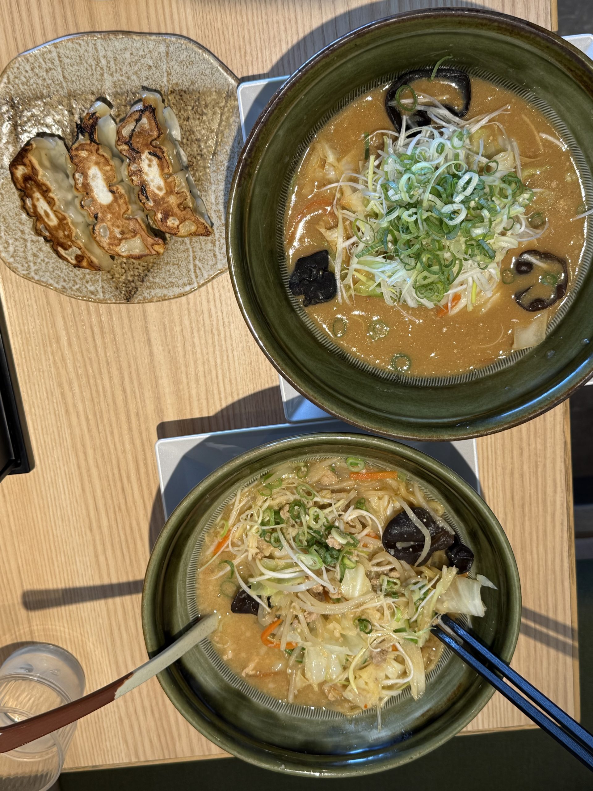 待っている間、老舗百貨店に駐車し8階ラーメン屋でラーメンと餃子を注文しました。注文したのは、新潟白味噌ラーメン。美味しく食べ始めたところで、店員さんがやって来ました。話を聞くと私が食べ始めたのは、となりの席の方が注文した赤味噌ラーメンだったとのこと。