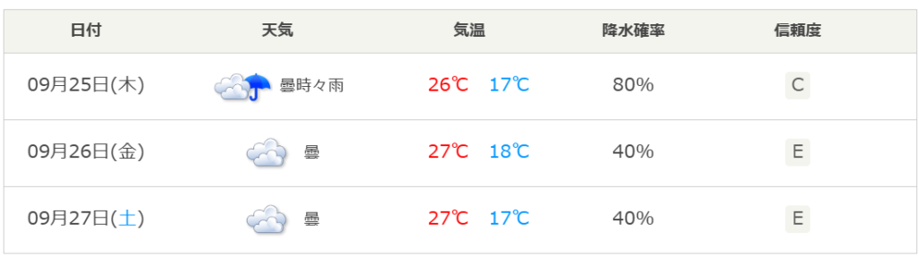 > 9月末は、ちょっと天気がよくないね。3,4日したらまたチェックしてみましょう。