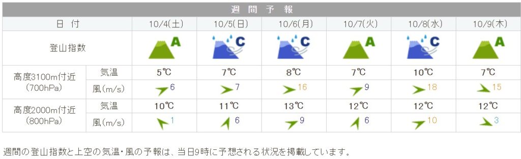 今朝は、期待を込めて千畳敷カールの10/9の登山指数を見ました。
