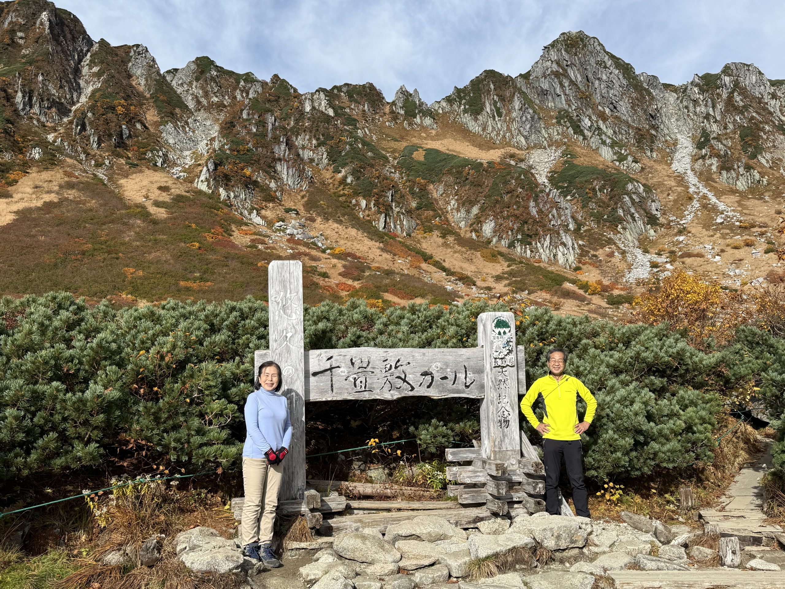 ロープウェイが千畳敷駅に近づくと、右側の斜面の絶景に感動しました。乗客たちの感動の声が上がりました。おそらく、今年一番の色づきと天気なのだと思いました。