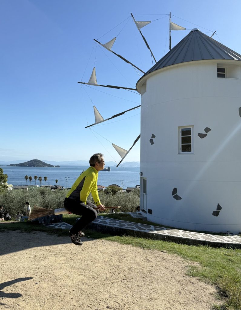 影を見るとずいぶんとほうきに乗って浮いているように見えますね。