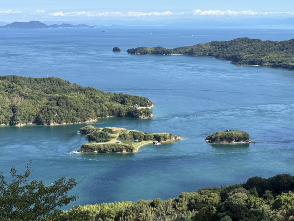 島にある展望台からは、伯方島、大三島などの多島海景観や村上水軍の本拠地があった能島が望めます。サイクリングでしまなみ海道を渡ることができます。