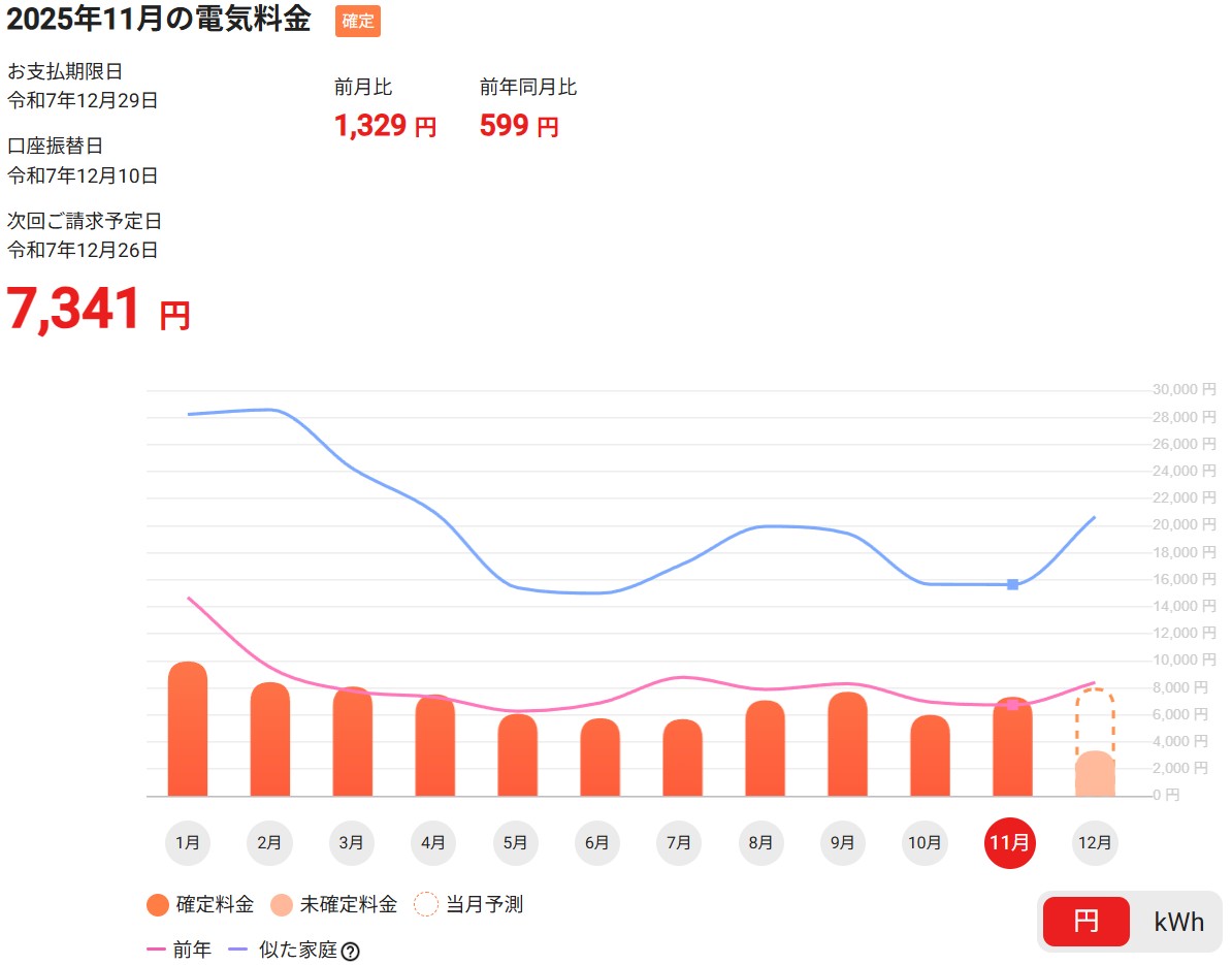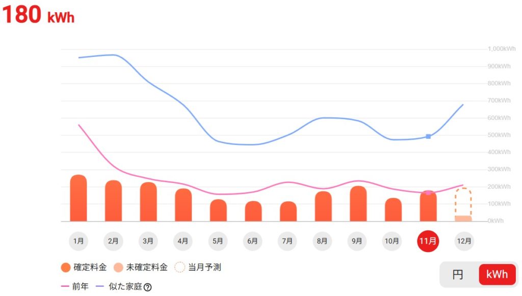 つまり、今年は「曇りや雨が多く、日射量が不足した月」で、昨年の「晴れが多く日射量が豊富だった11月」と対照的でした。